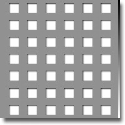 Tabla perforata cu perforatii patrate este realizata din otel, aluminiu sau din inox(AISI304, AISI316L). Tabla perforata cu gauri patrate dispuse in paralel la 90 de grade.